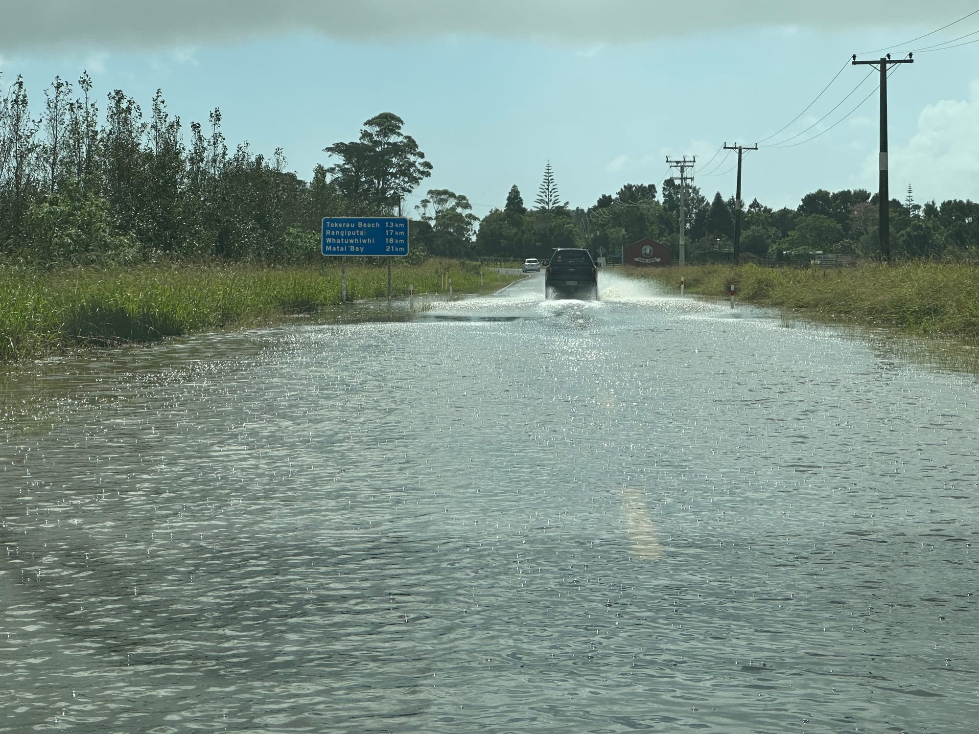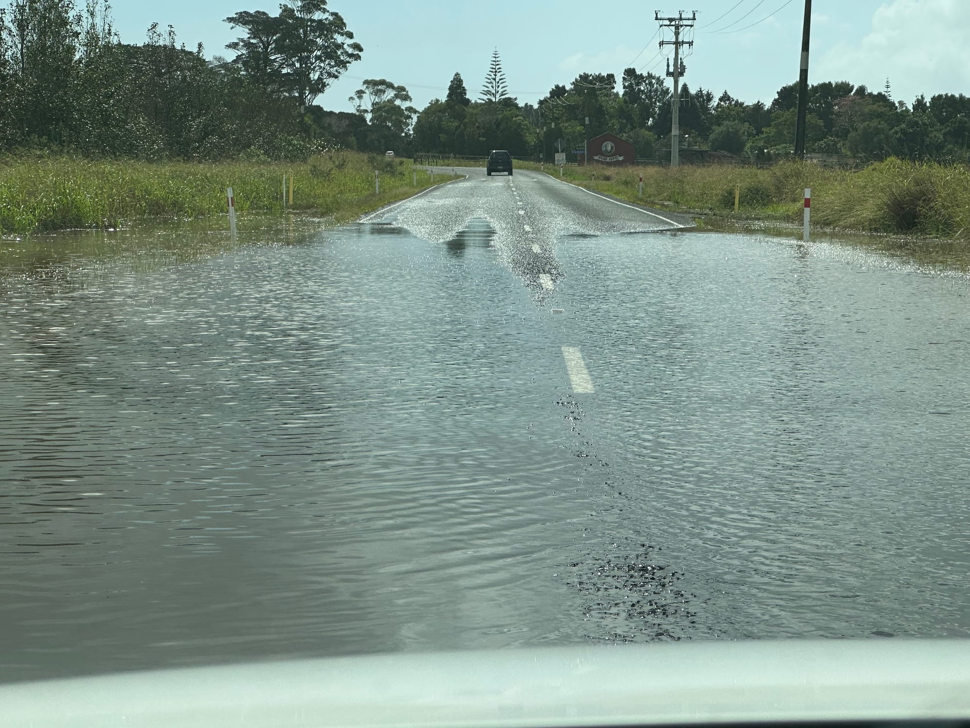 It’s been a very eventful few days! We were closely watching a big slow-moving sub-tropical low that was forecast to dump a huge amount of rain on the country, starting with northland, where we were headed. The rain started Wednesday night, as forecast, so we got an early start on Thursday morning, on the road by 06:45 in steady rain. With the twisty winding roads, we slowed down quite a bit, and everyone else did too. We were headed to Whangerei for the night before going further north. Got there with time to kill before we could check in so did a few chores. We found a decent pub for dinner, then started looking closely at road closures in north of us. Our plan was to get to Rangiputa on the Karikari peninsula where we’d booked in for 3 nights. In Kaitaia, the storm system dropped more than 240mm of rain in 2 days, 2 months worth of rain! Lots of slips, flooding, and bridge damage. We waited until Friday morning to make our final decision. We messaged with the motel we were heading to and they had missed the full impact and roads in the area were open. Overnight, the highway crews worked to clear most of the major highways so we ended up with only a short detour around the biggest problem area in Kaitaia. It was a bit surreal driving north on Friday on a beautiful sunny day after the rain the previous 2 days. Fields along the way had become lakes and lots of small slips. We only had one small flooded road to deal with and no issues!