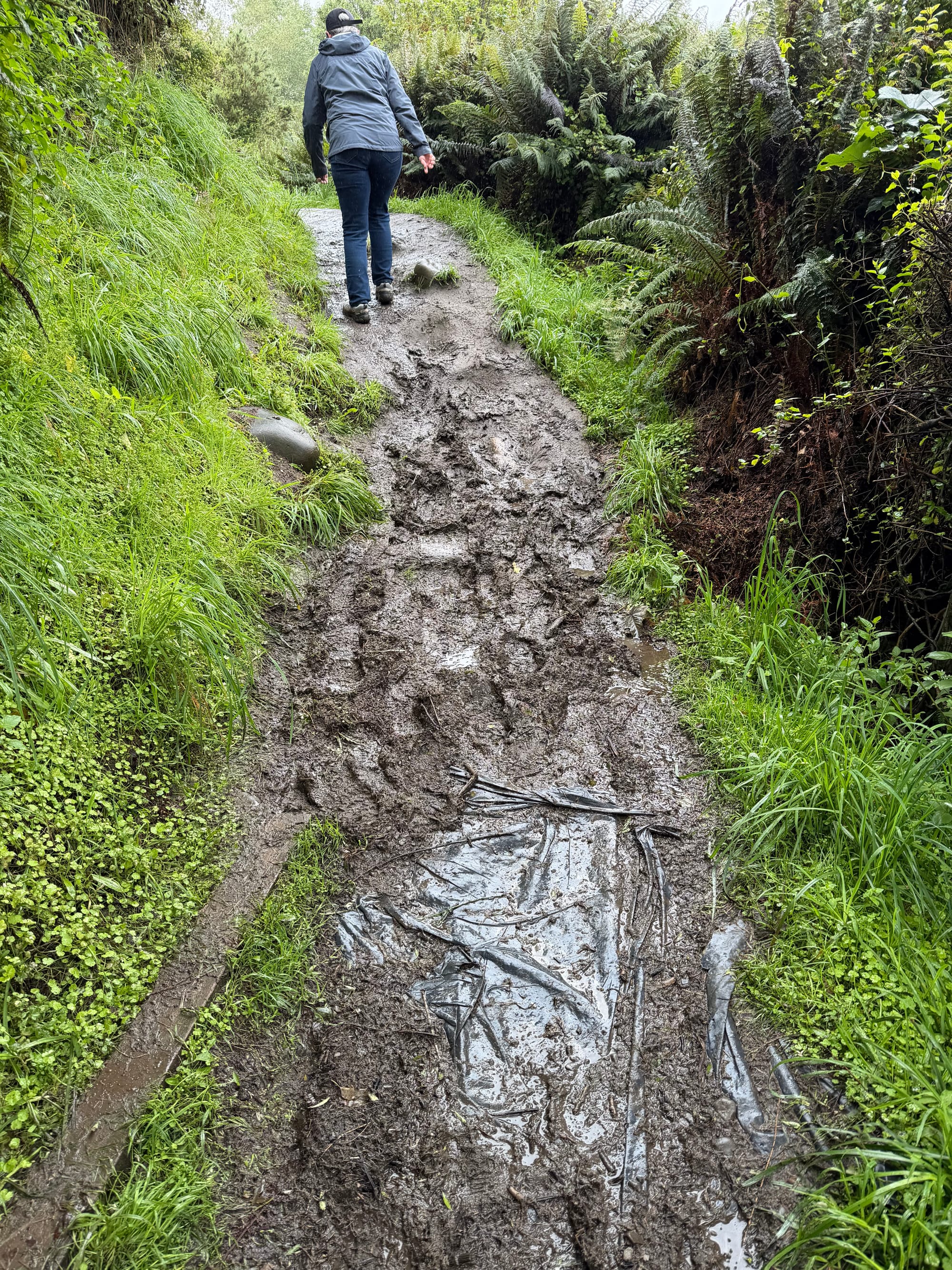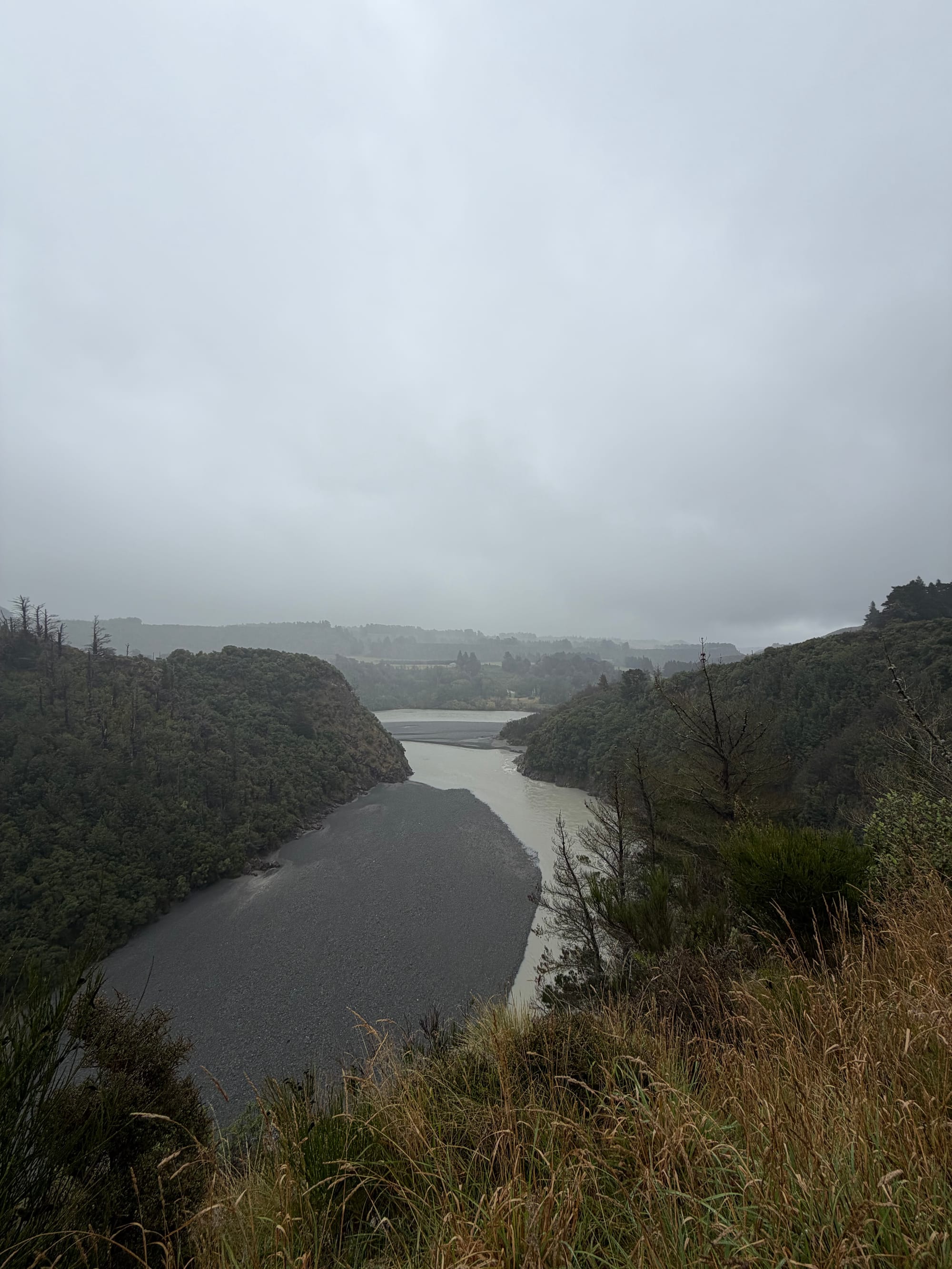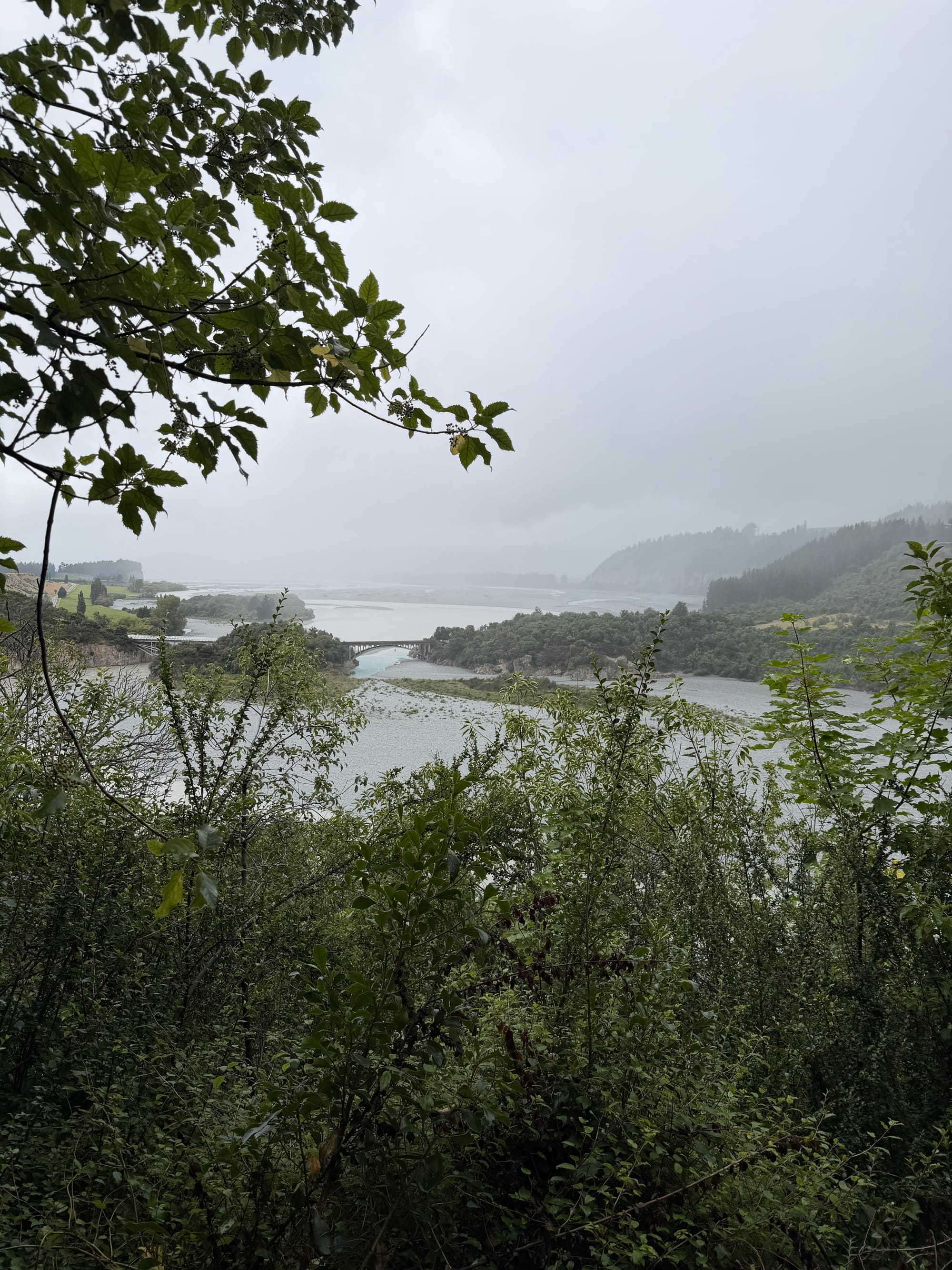 Said goodbye to our host Rosie and headed out bound for Fairlie, our midway stop for the night before Albert Town. The weather forecast was for cloud, but no rain, yeah, right! We stopped for a hike at the Rakaia River Gorge. It was about 5K return, the first half uphill, then back downhill. It was drizzly and muddy, but the views were worth it, as always. Ran into a few people on the trail, some well equipped, some in beautiful gleaming white running shoes and white socks, soon to be black, but these too are life’s lessons…