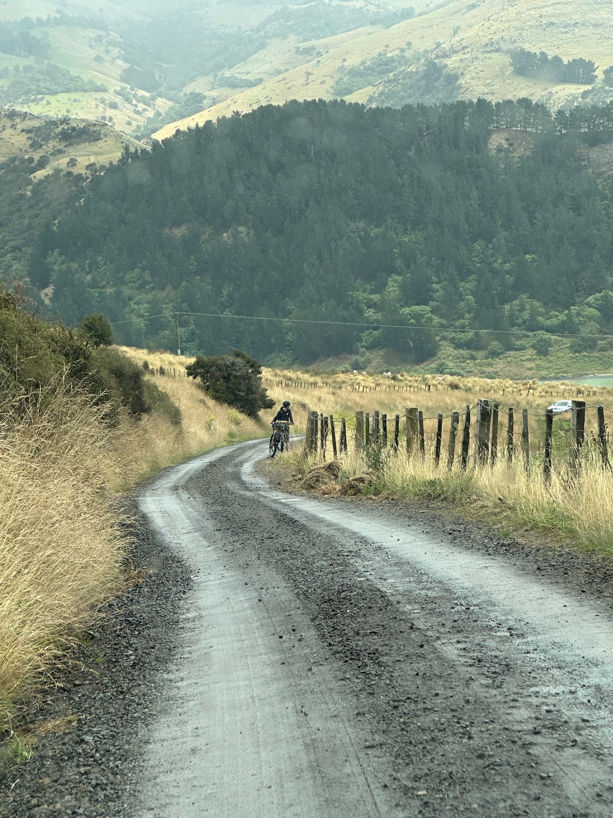 On to Akaroa for a coffee and somewhere tho stop to have our lunch. By this time, it was raining again but we found a place to park that we could look out over the water. Akaroa is a a high end tourist place. Beautiful restaurants, cafes and shops. Saw a couple of Maseratis so guessing the median income is probably higher than we’re used to! We decided to take the scenic route back to Diamond Harbour. More twisty windy roads, but this time with narrow lanes, or one lane, and dirt roads (OK, mud roads). The views were worth it. Only met 2 other vehicles, and there was just enough room to pull over and pass, VERY SLOWLY.