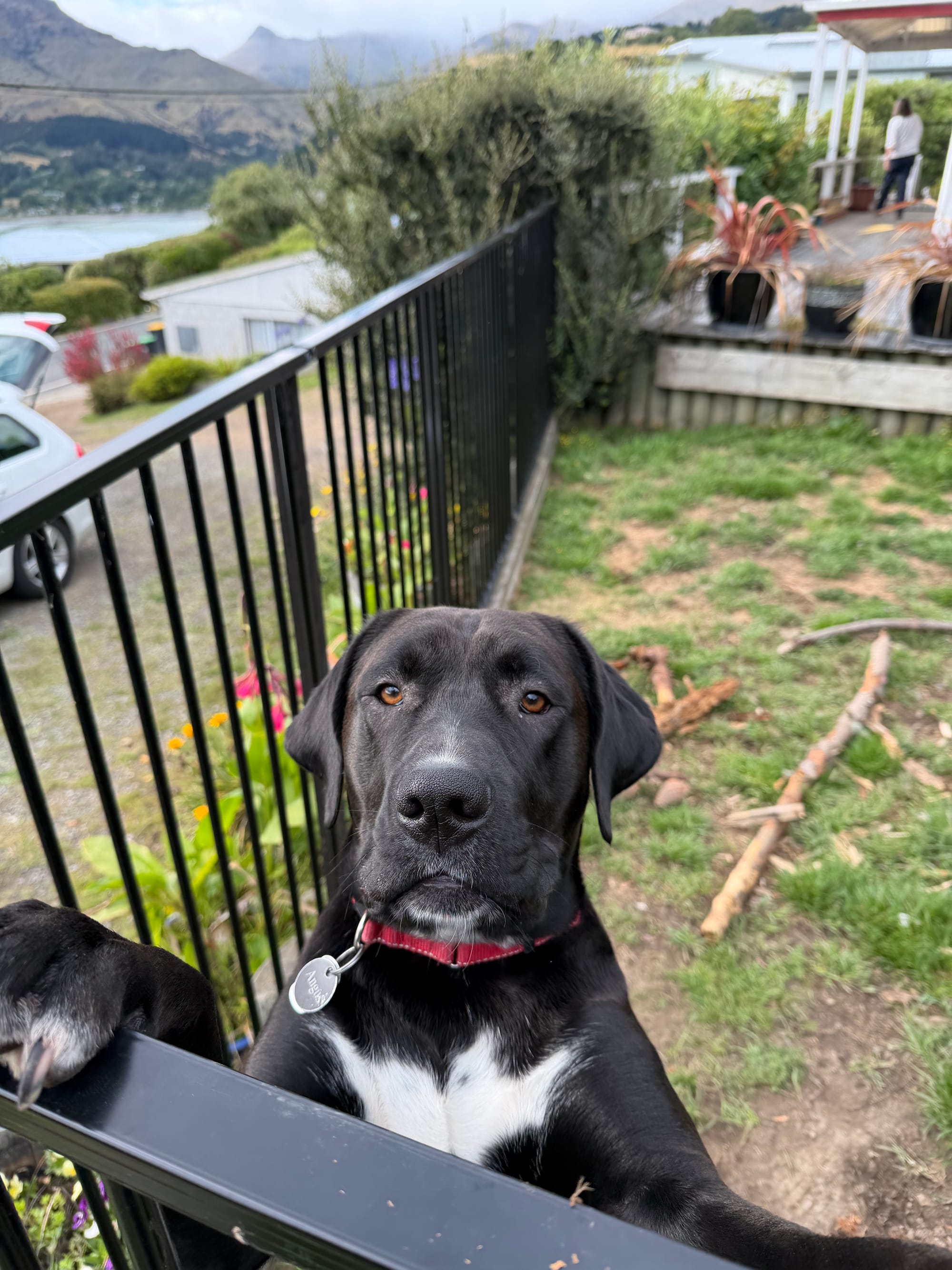 Crazy Fire Juggler, and steak dinner, and Angus, our hosts 40kg lab mix puppy!