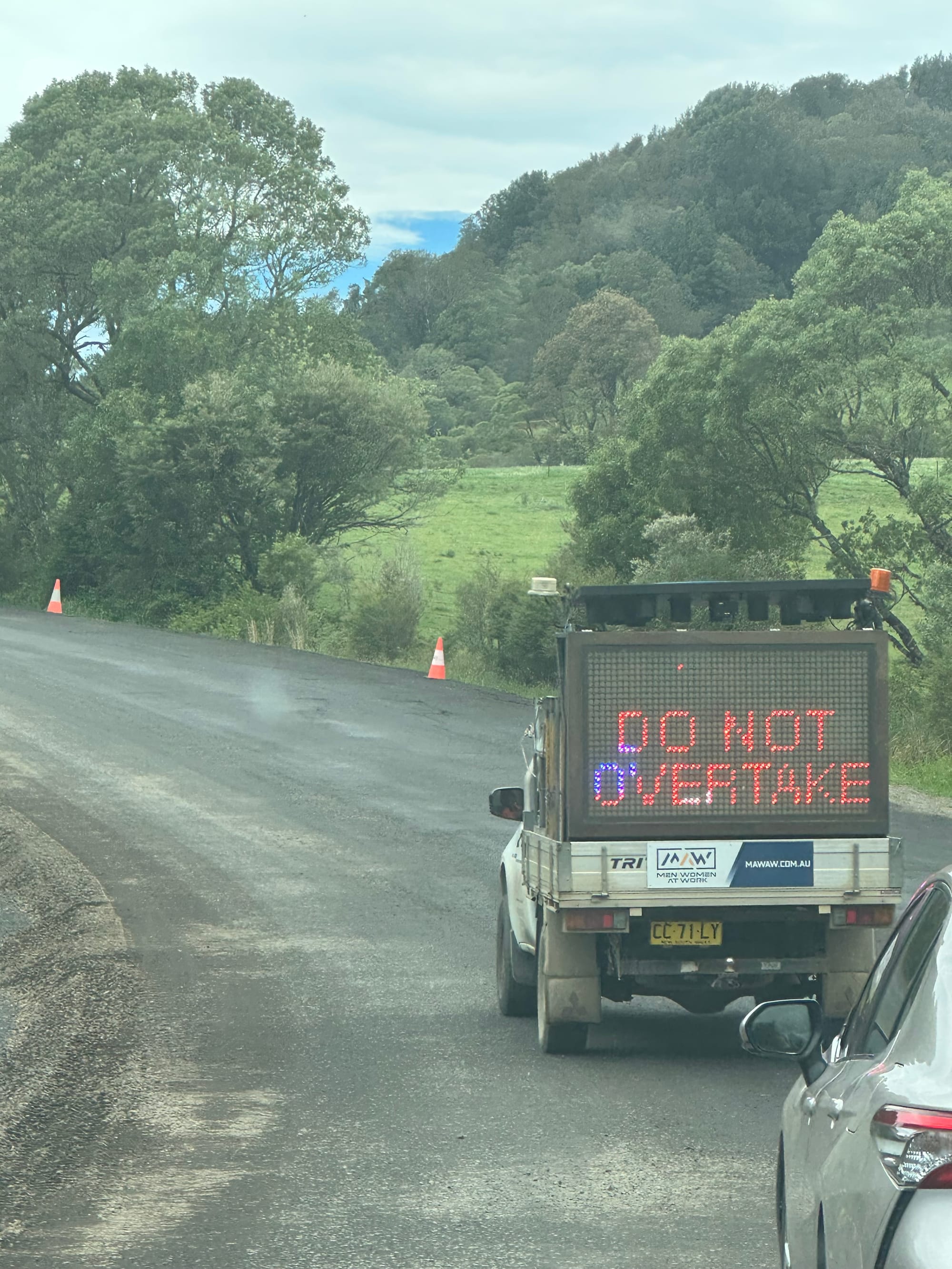 The last leg to Coffs Harbour wound through the Great Dividing Range. This is the only mountain range in Australia and runs along the east coast. It’s the major watershed and divides the continents rivers between those that run east and west. This is our second time through it on this trip. Lots of roadworks along the way and a twisty mountain drive.