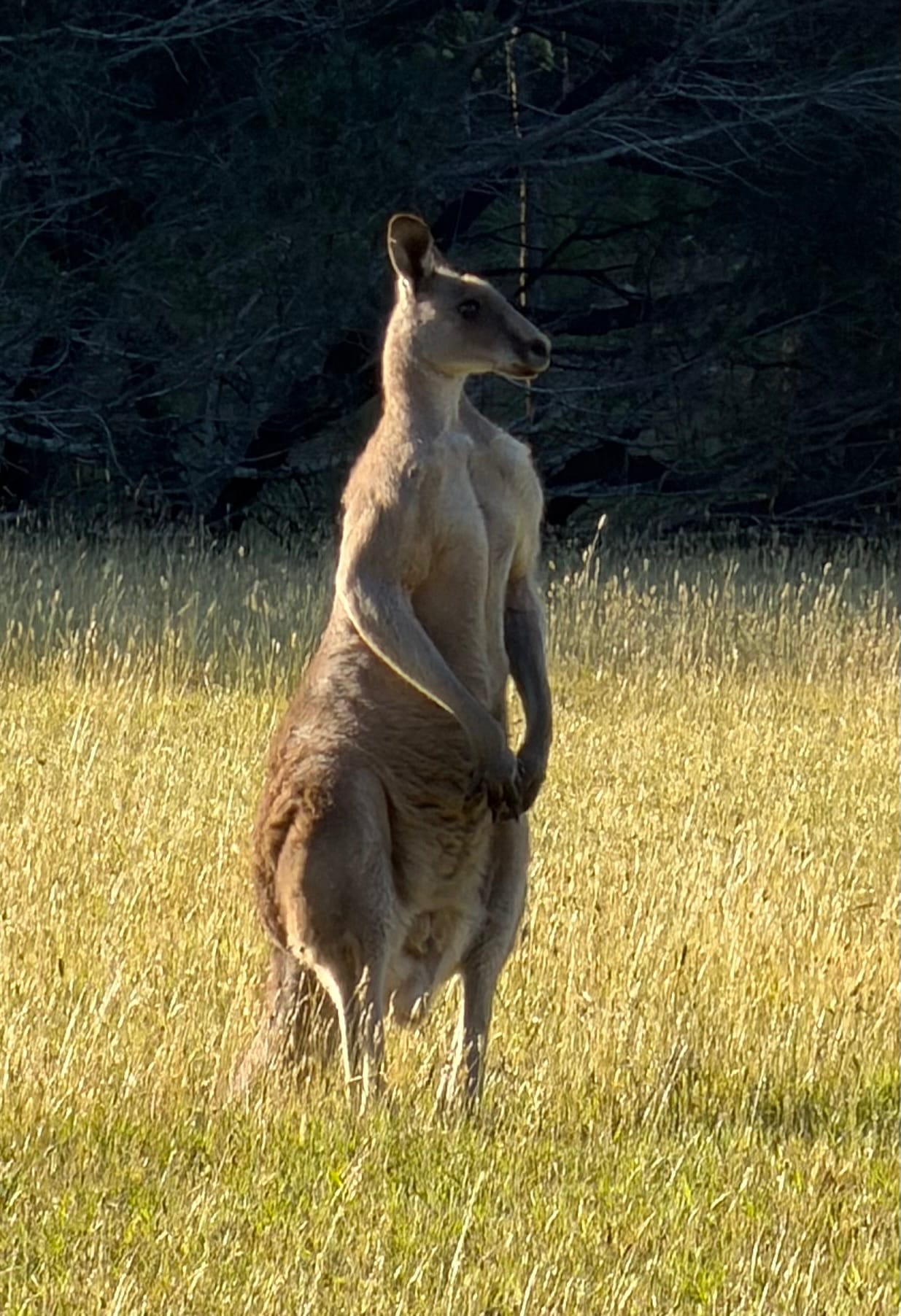 Our stop for the night was a holiday park in Tathra, about an hour and half south of Narooma. The drive took us out towards the coast and as it was later the day, we started watching for kangaroos. They feed morning and late afternoon, so you’re more likely to see them, and they’re also more jump out in front of the car! We saw lots of wallabies and grey kangaroos. We did stop at one point to get a few pics of a small herd of grey kangaroos. Very impressive!