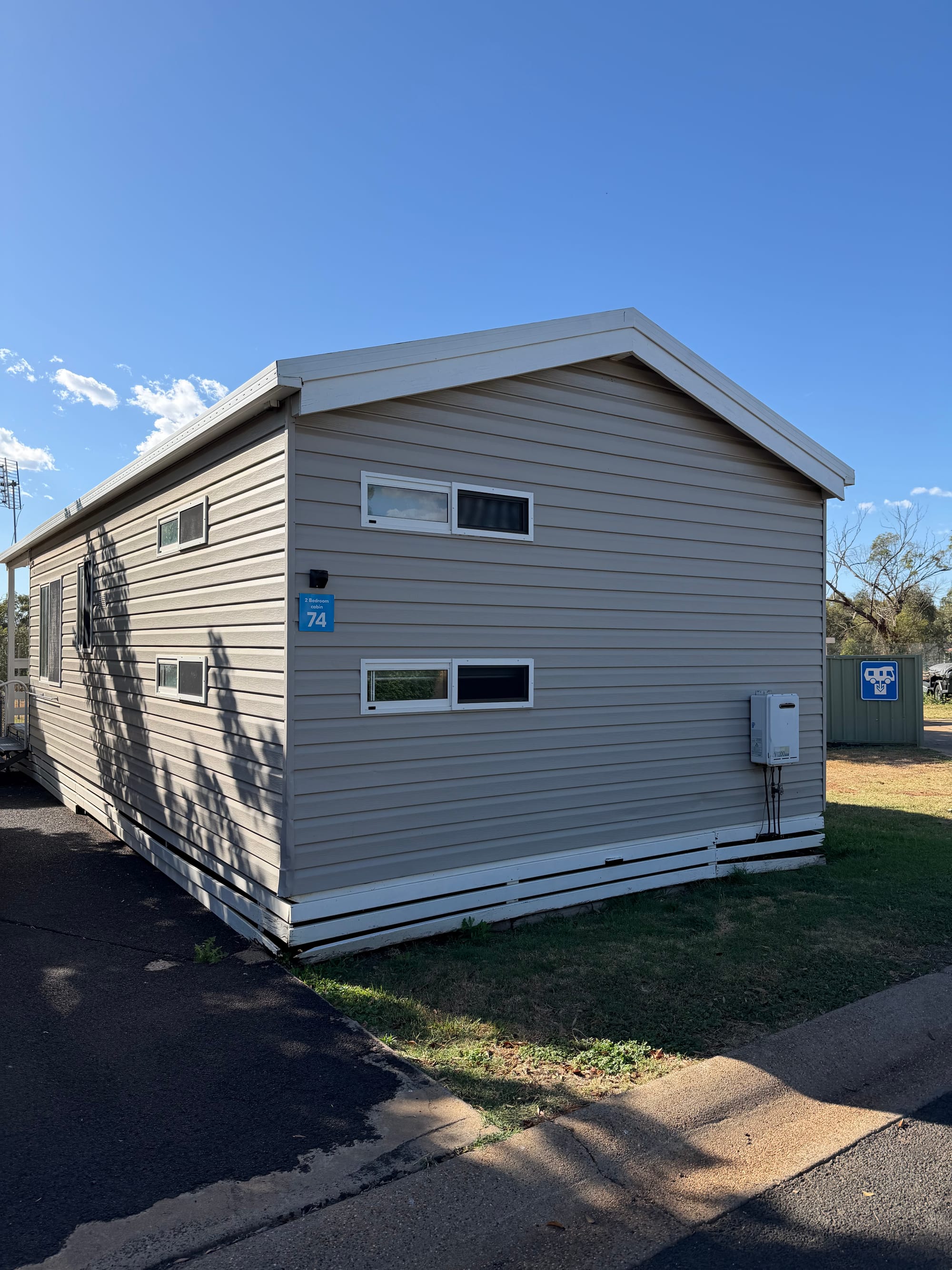 We’re staying in another NRMA Holiday Park in Dubbo. This is a great way to travel and keep costs reasonable. We have a 2 bedroom cabin with a kitchen, full bath, and a nice covered deck with BBQ, for just over $150 AUD per night. Nice and clean and the people running it are awesome.