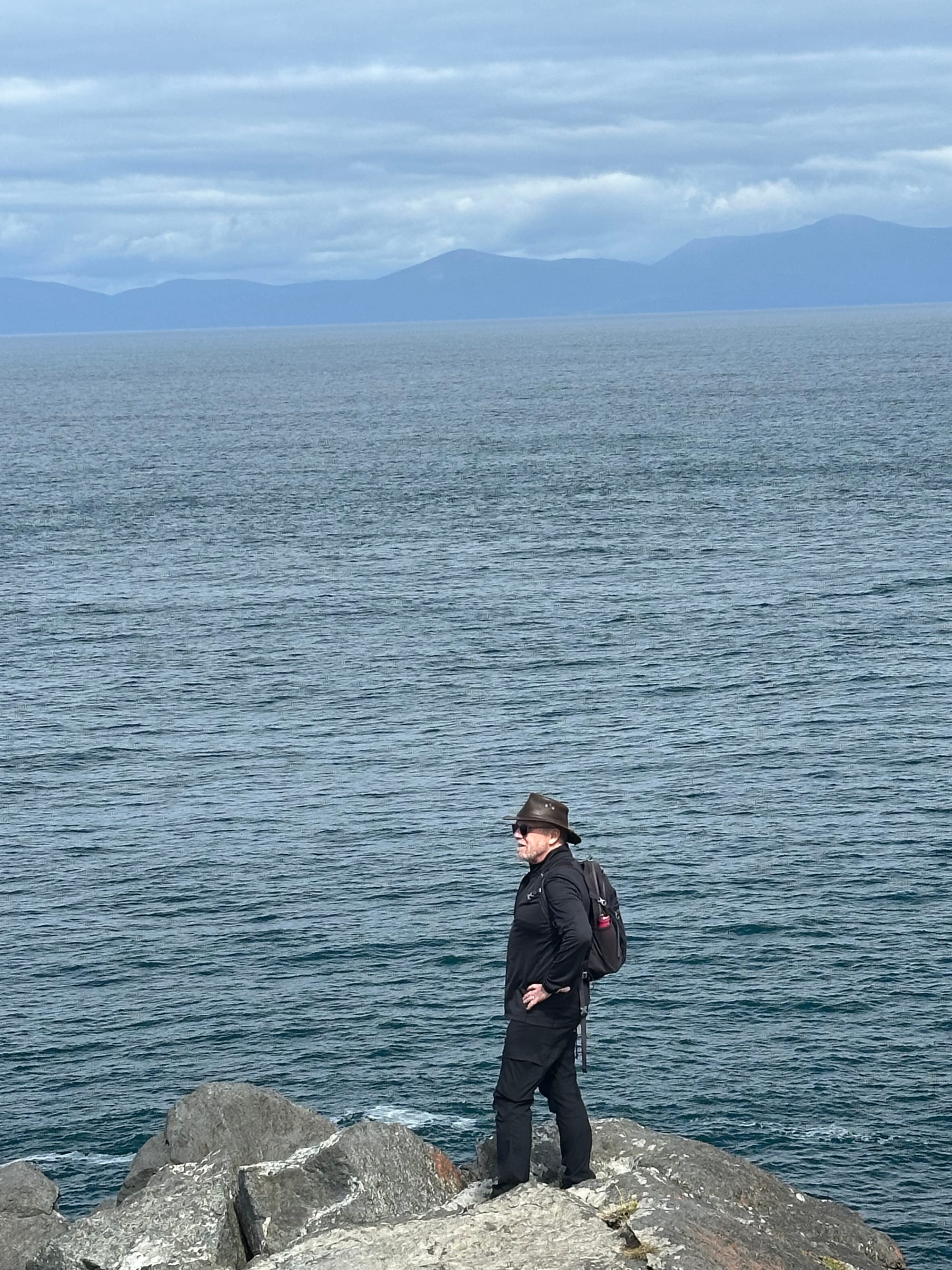 The next day was planned for a hike to Lookout Point in Bluff. The weather actually matched the forecast, sunny, cool, and a light breeze, perfect for a nice 7.5 km hike up and over Bluff Hill, out to Lookout point and back along the edge of Foveaux Strait to Bluff. Lots exercise, and great views over the Foveaux Strait to Stewart Island.