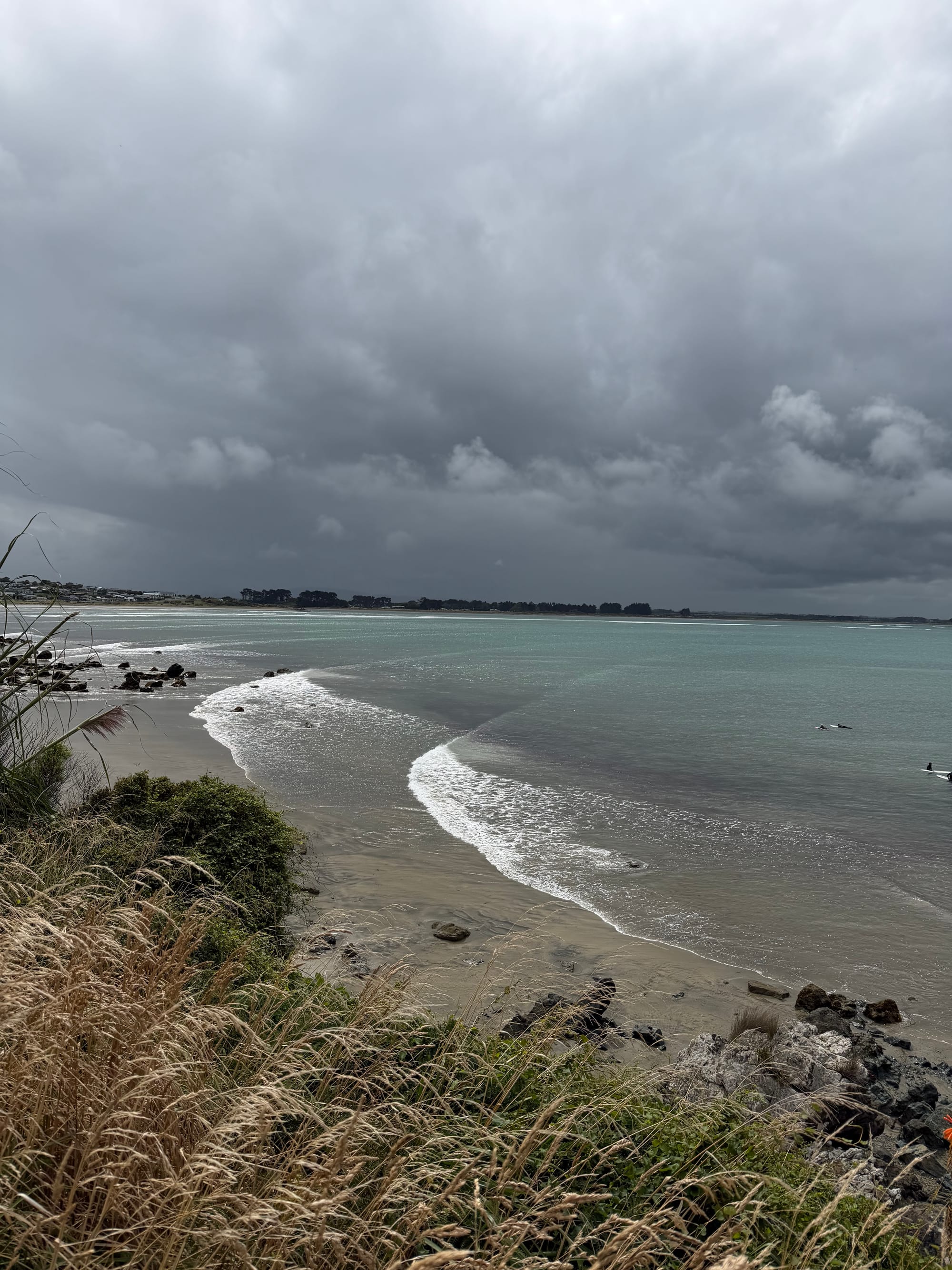 Saturday was supposed to be a rain day, but after a few chores (I really needed a haircut) and a wander around downtown, we took a drive out to Riverton, about 20 minutes away. This is THE surf beach, and it was busy!