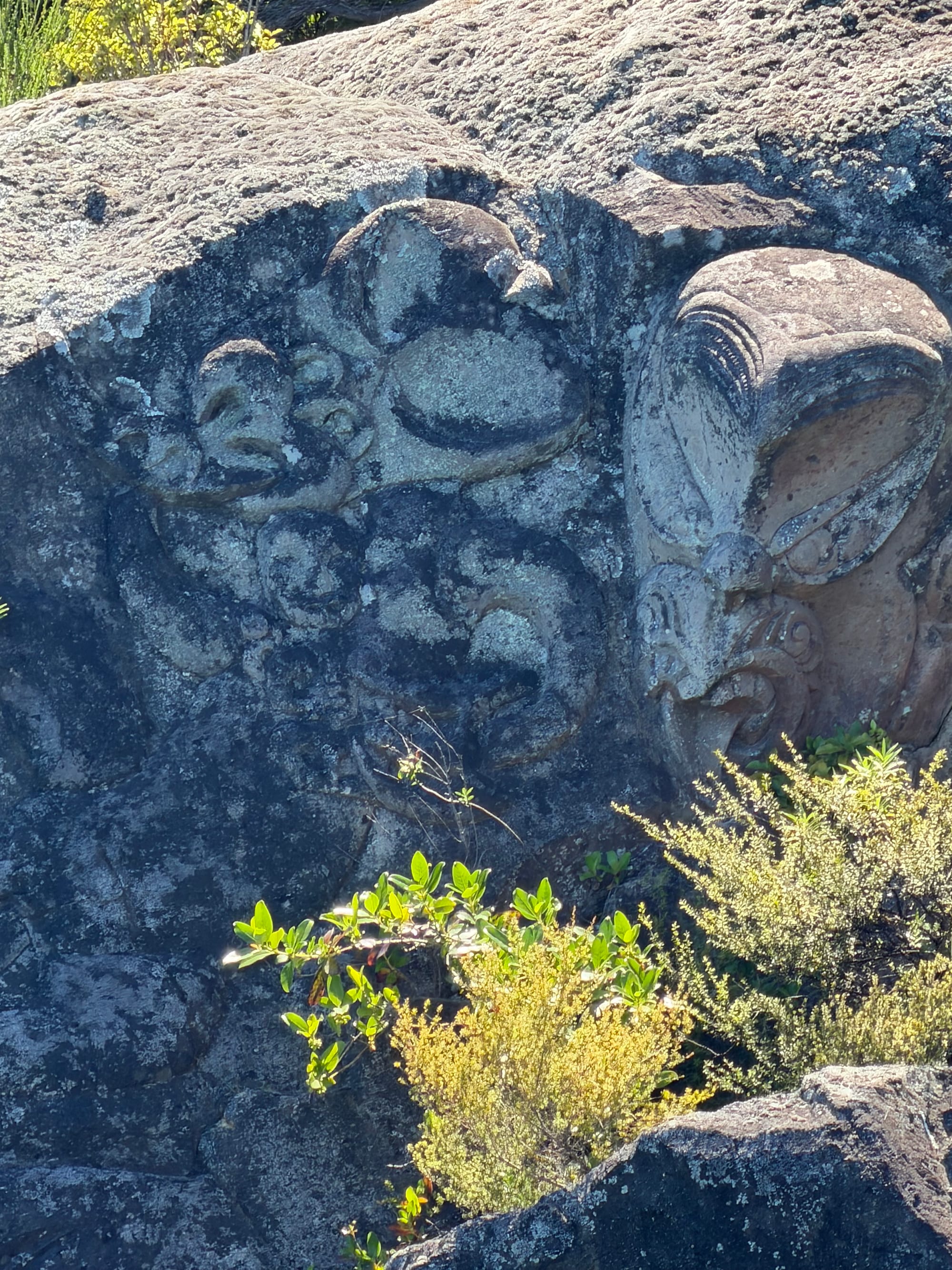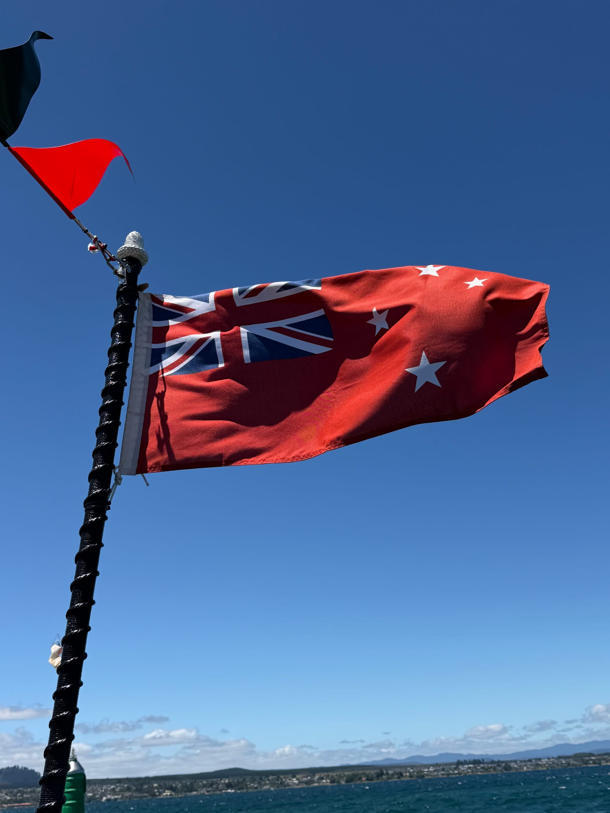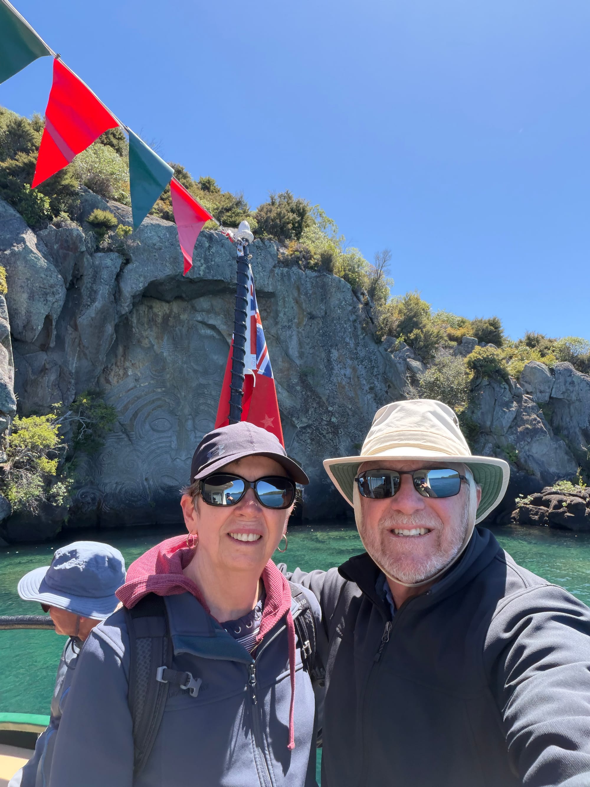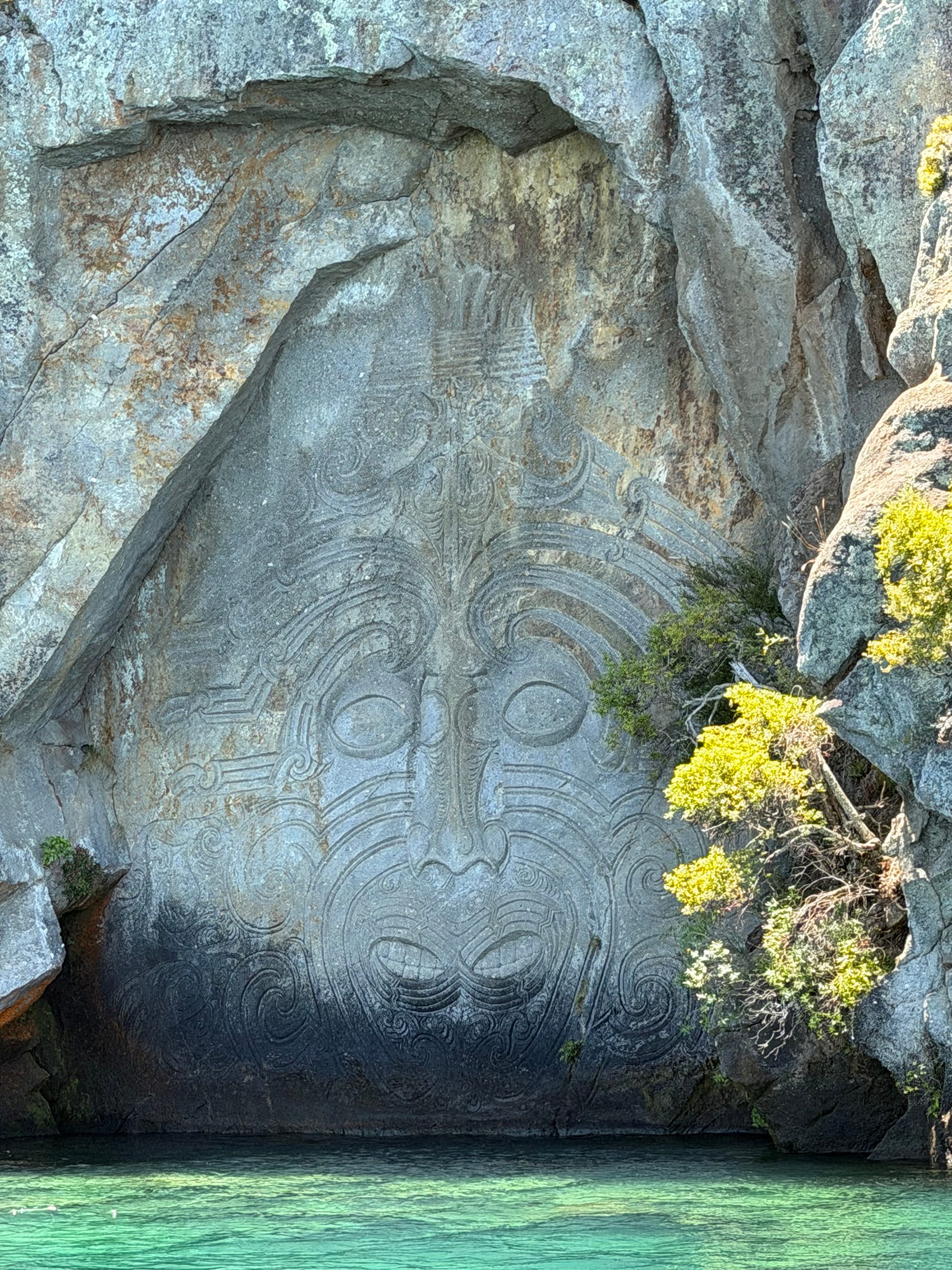 We booked for 2 nights in Taupo to give us some time to explore. Cathy found a 90 minute boat trip on the lake to see some rock carvings done by a local artist. Good price and it turned out to be a great trip. The Ernest Kemp is a replica of a 1918 coastal ship that was built in 1980 and originally used further north in the Bay of Islands. It only did a couple of years there until it was brought down to Lake Taupo. The cruise was absolutely worth it. It was cool on the lake but a stunning sunny day.