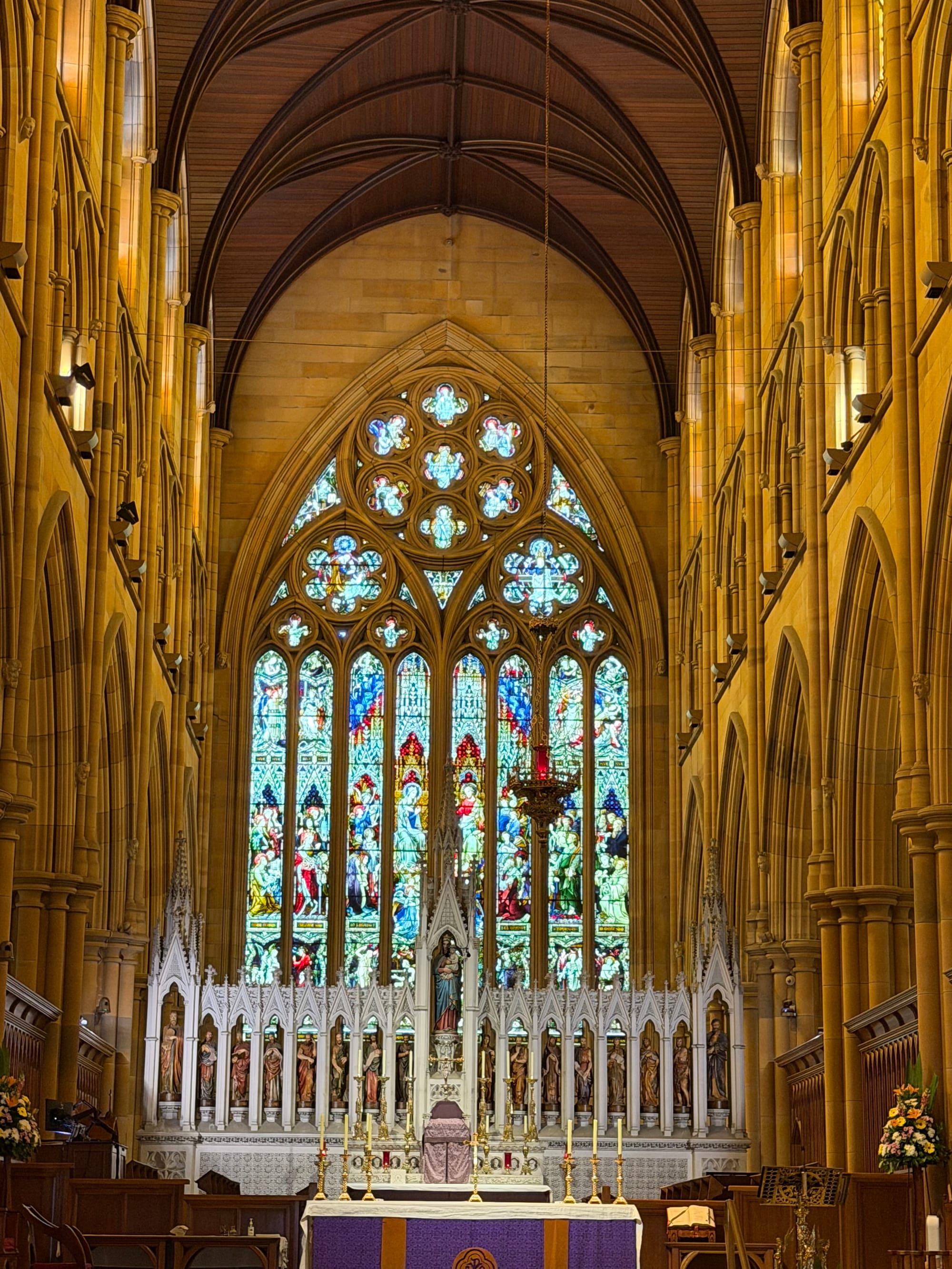 We also decided to take a walk around St. Mary’s Cathedral. The original St. Marys started construction in 1821 and officially became a cathedral in 1835. In 1865, it burned down and architect William Wardell was commissioned to design the new Cathedral. Construction was done in 3 stages. Stage one was between 1865 and 1900, stage 2 was between 1912 and 1928, and stage 3 was finally completed in 2000. It’s considered one of Australias most significant buildings and visitors are welcome to explore inside and out.
