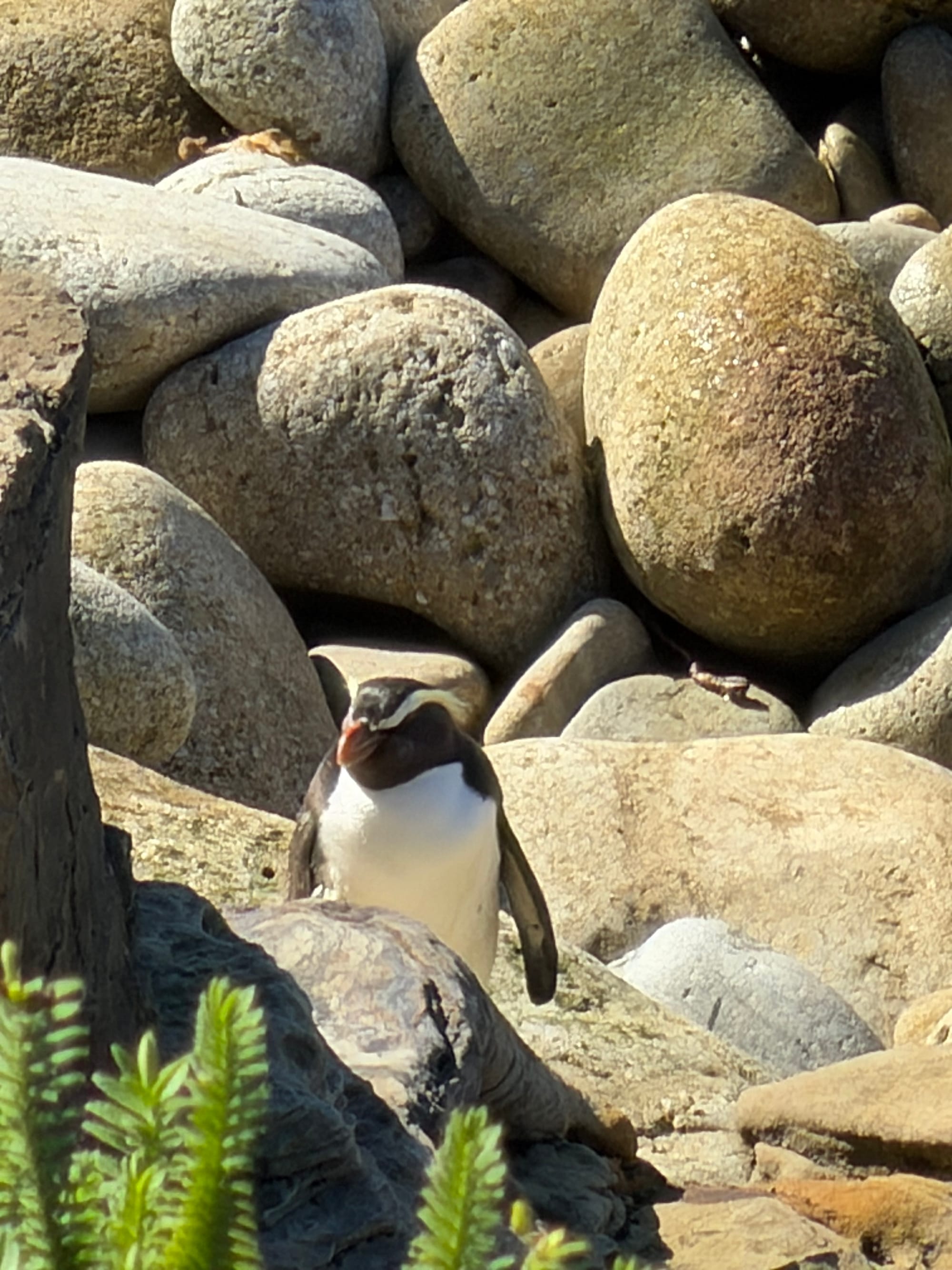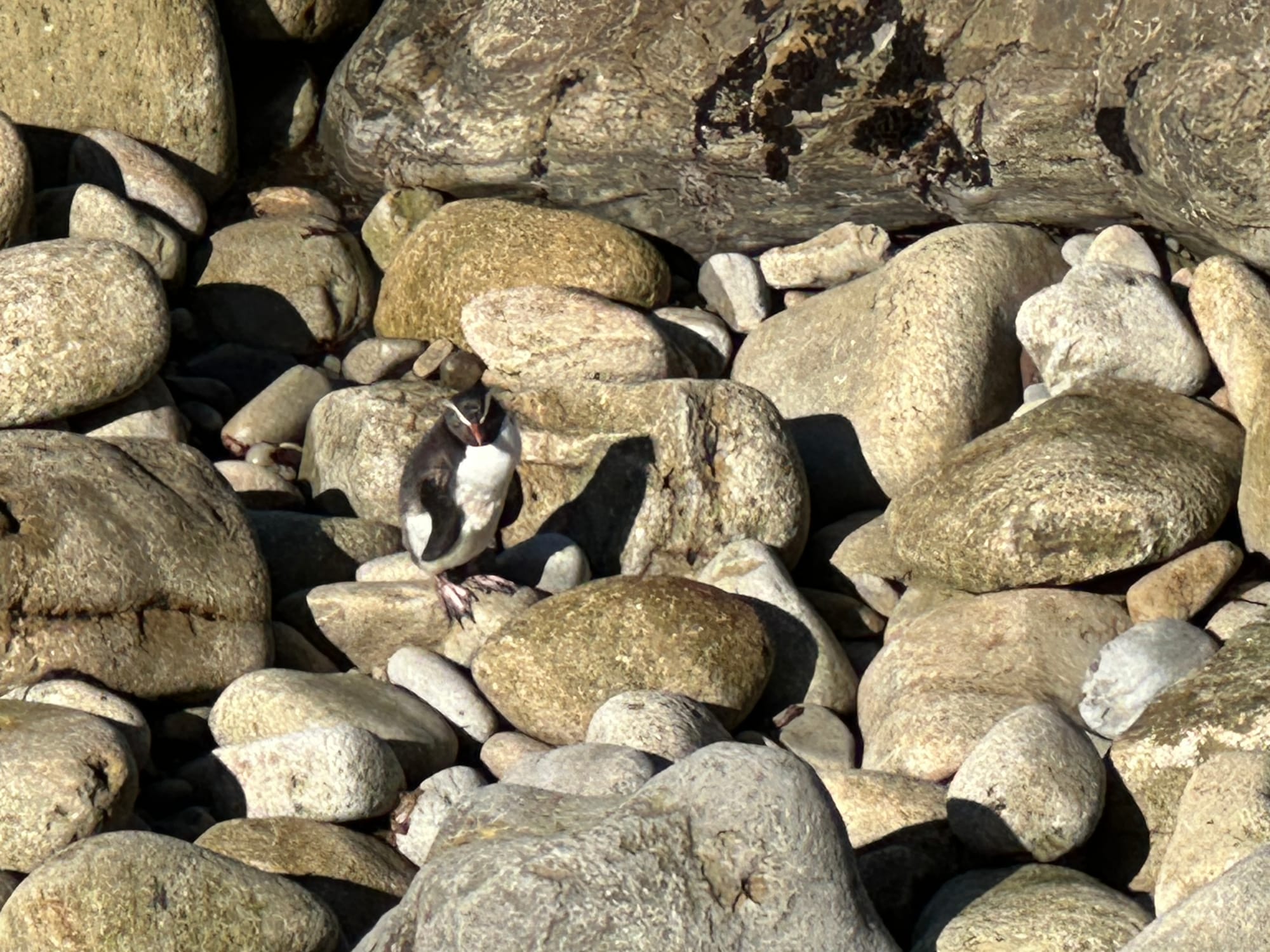 Our first stop on the way to Timaru was Shag Point. There is a sea lion colony there and who doesn’t want to see more sea lions! We got very lucky and saw a Fiordland Penguin too. According to New Zealand Birds Online, they are endemic to the south western coast of the South Island and are rarely seen elsewhere. This one was chilling with the sea lions on the shore