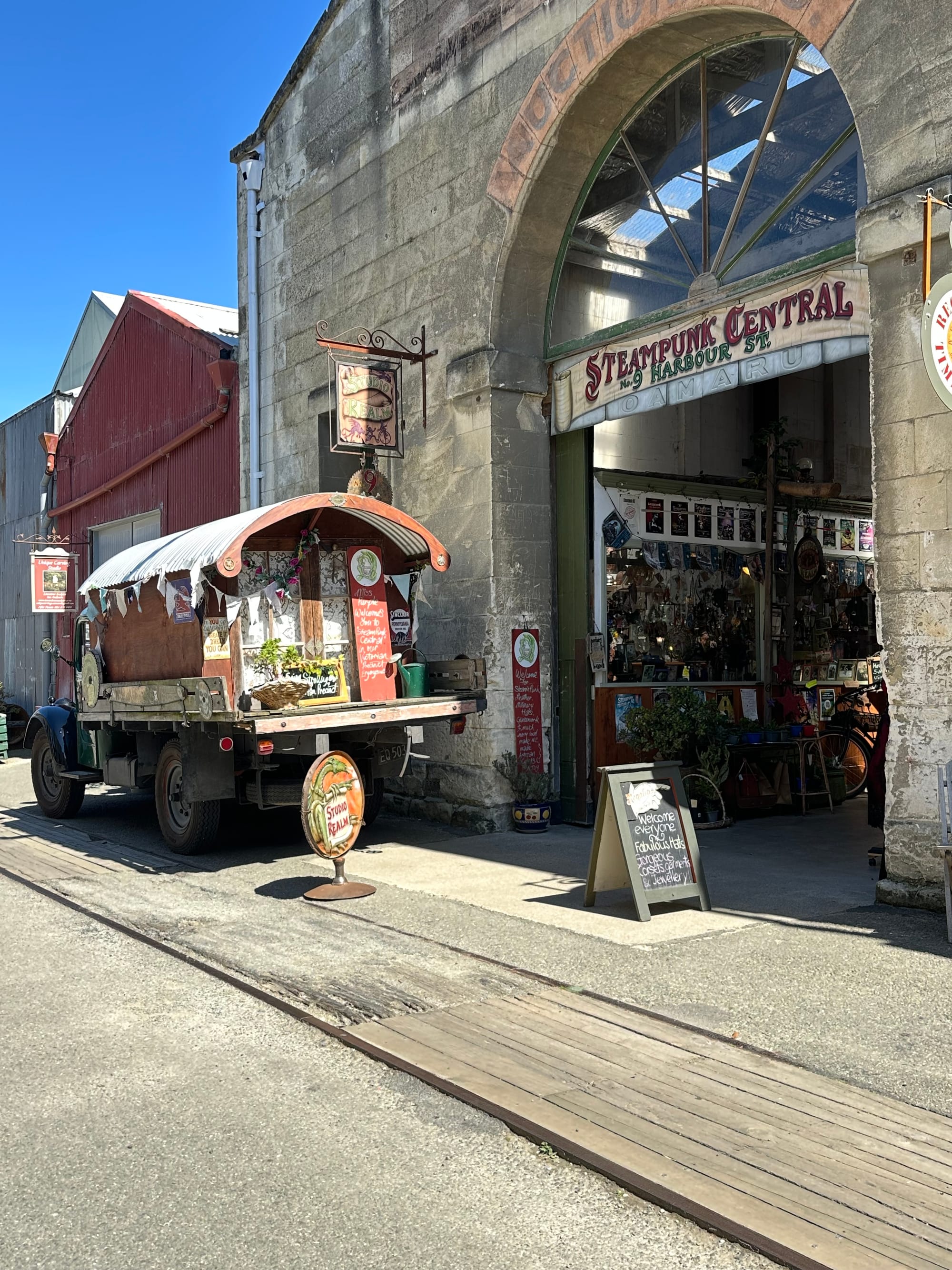 Next stop for the day was Oamaru and the Heritage Precinct. Oamaru bills itself as the Steampunk Capital of New Zealand and many of the shops in the Heritage Precinct play on this! Great place to wander around and lots of odd shops to explore. Found one place where I got a chance to talk to the owner, and creator, the BUGGYROBOT Gallery. Lots of weird little metal creations. His workshop is on one side and the gallery is opposite. In his words, “the gallery gives you a glimpse into my head”.