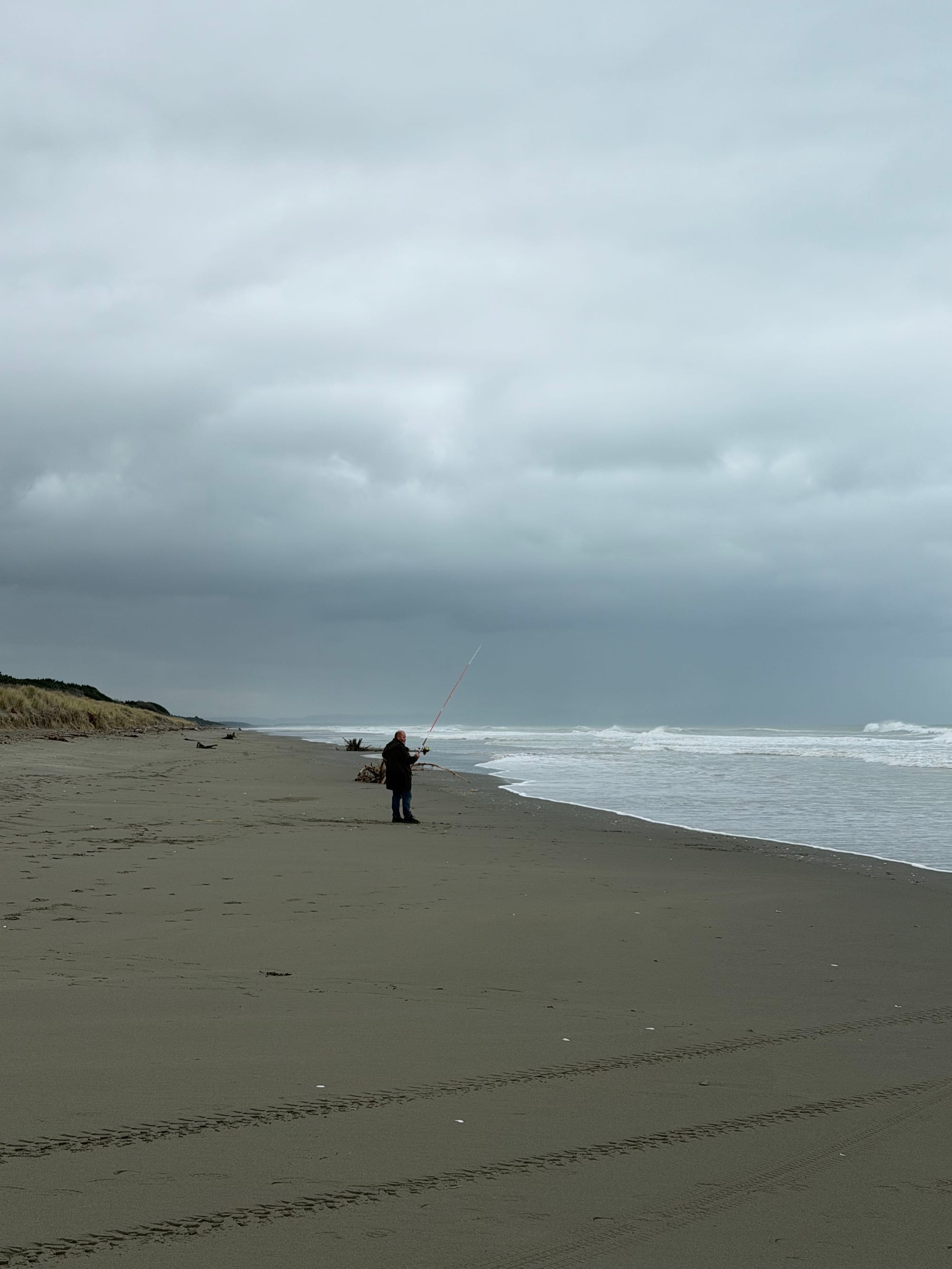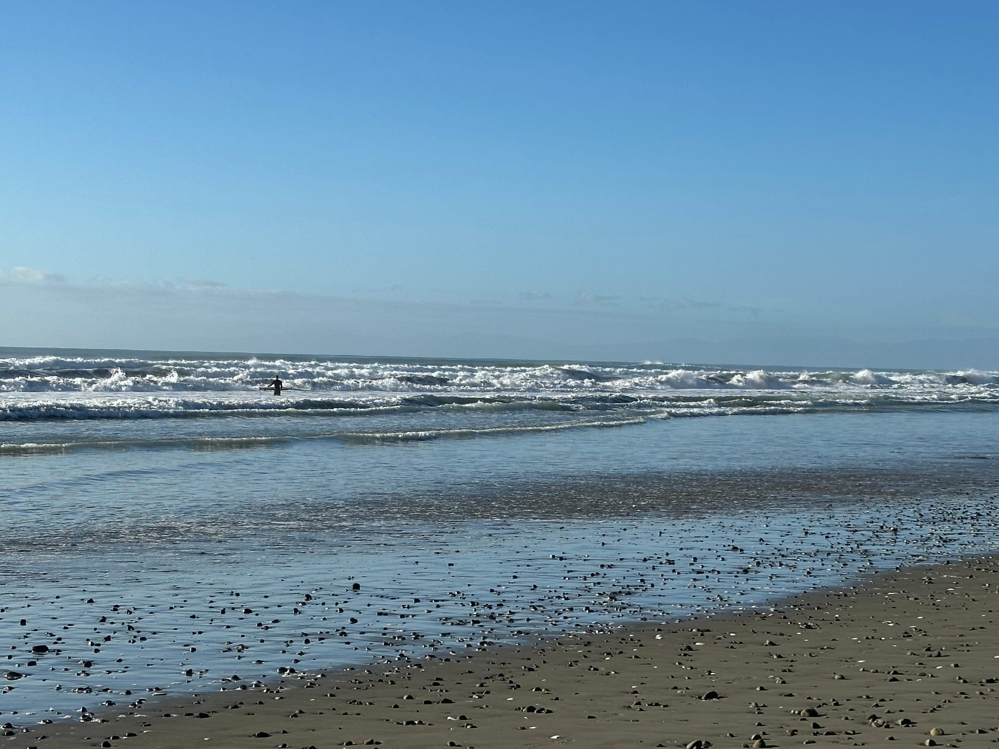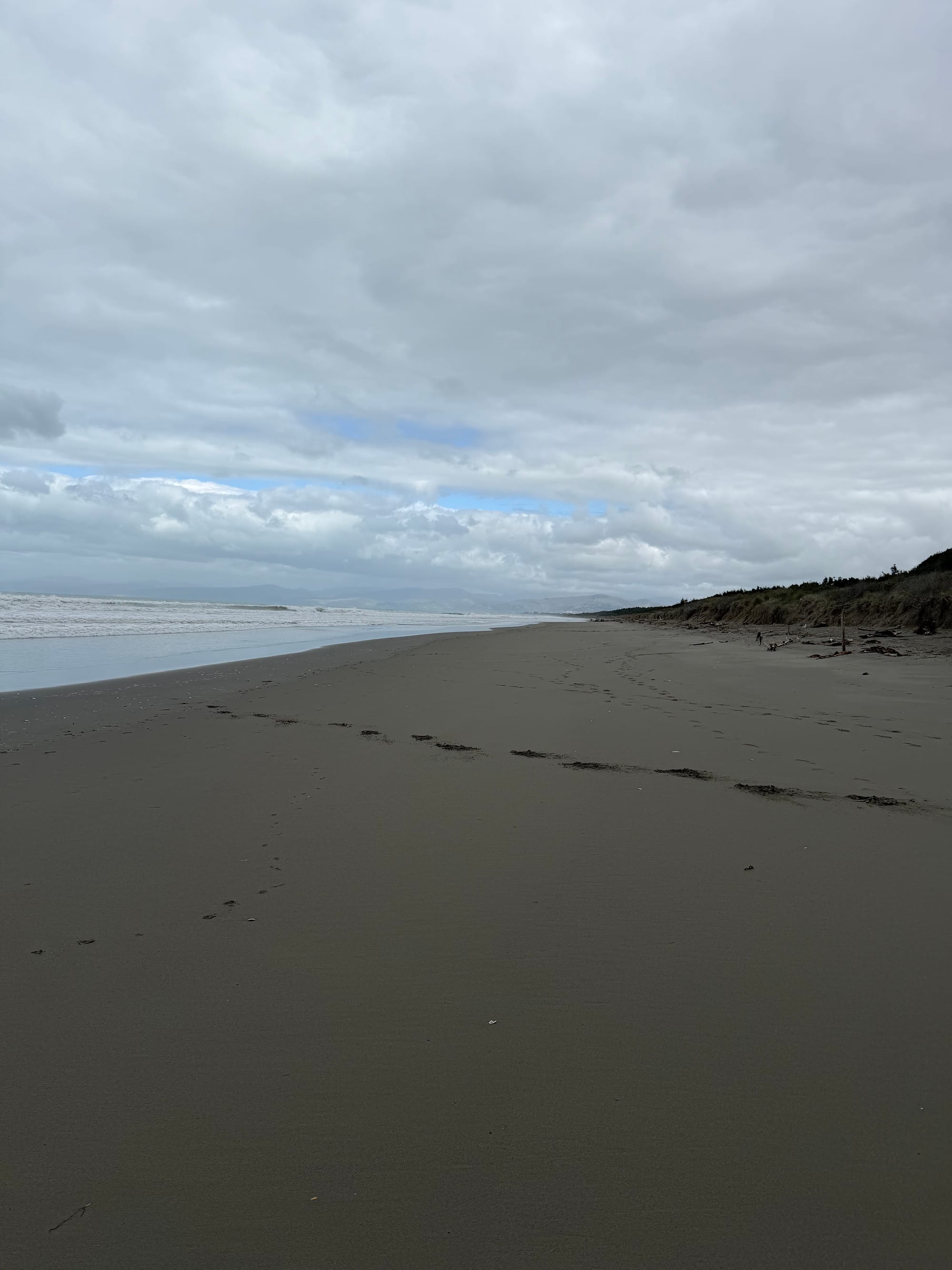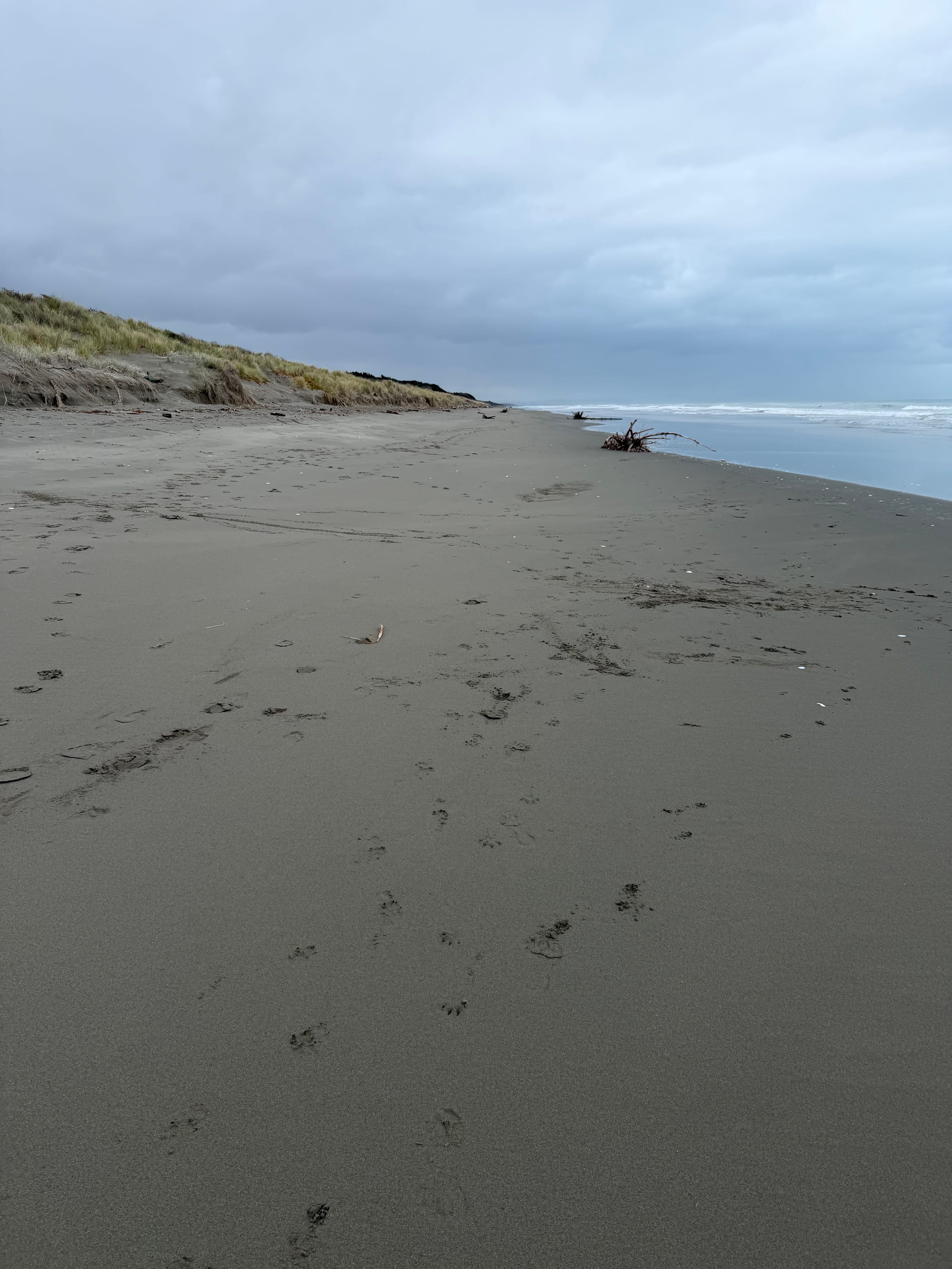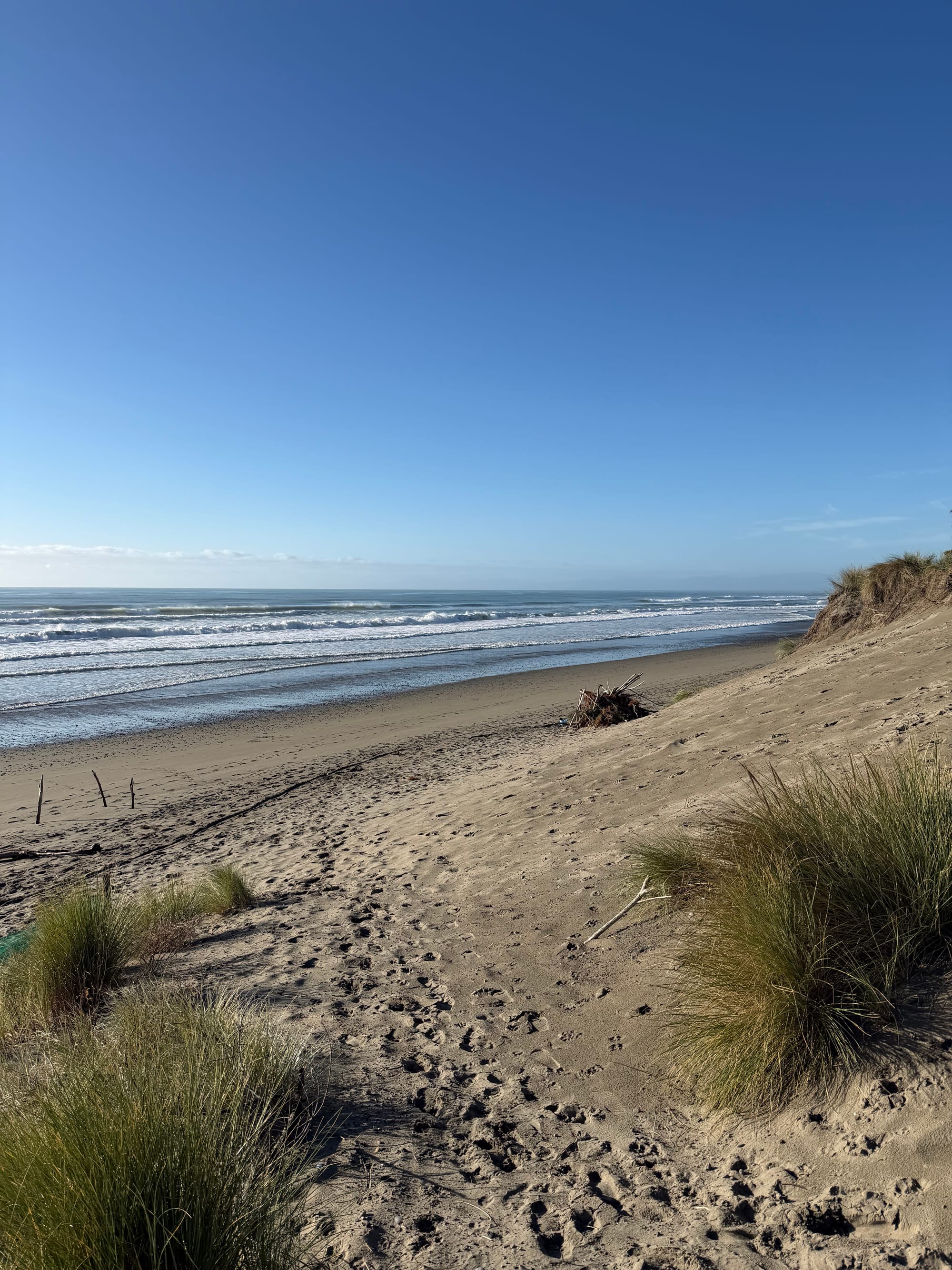 We stopped at Waikuku beach on the way for a morning walk. It was cool but the sun was out and it promised to be a nice day. Watched a few surfers tackling the ongoing southerly swell that has been hammering the west coast and Cook Strait the past few days. Great waves and they looked like they were loving it.