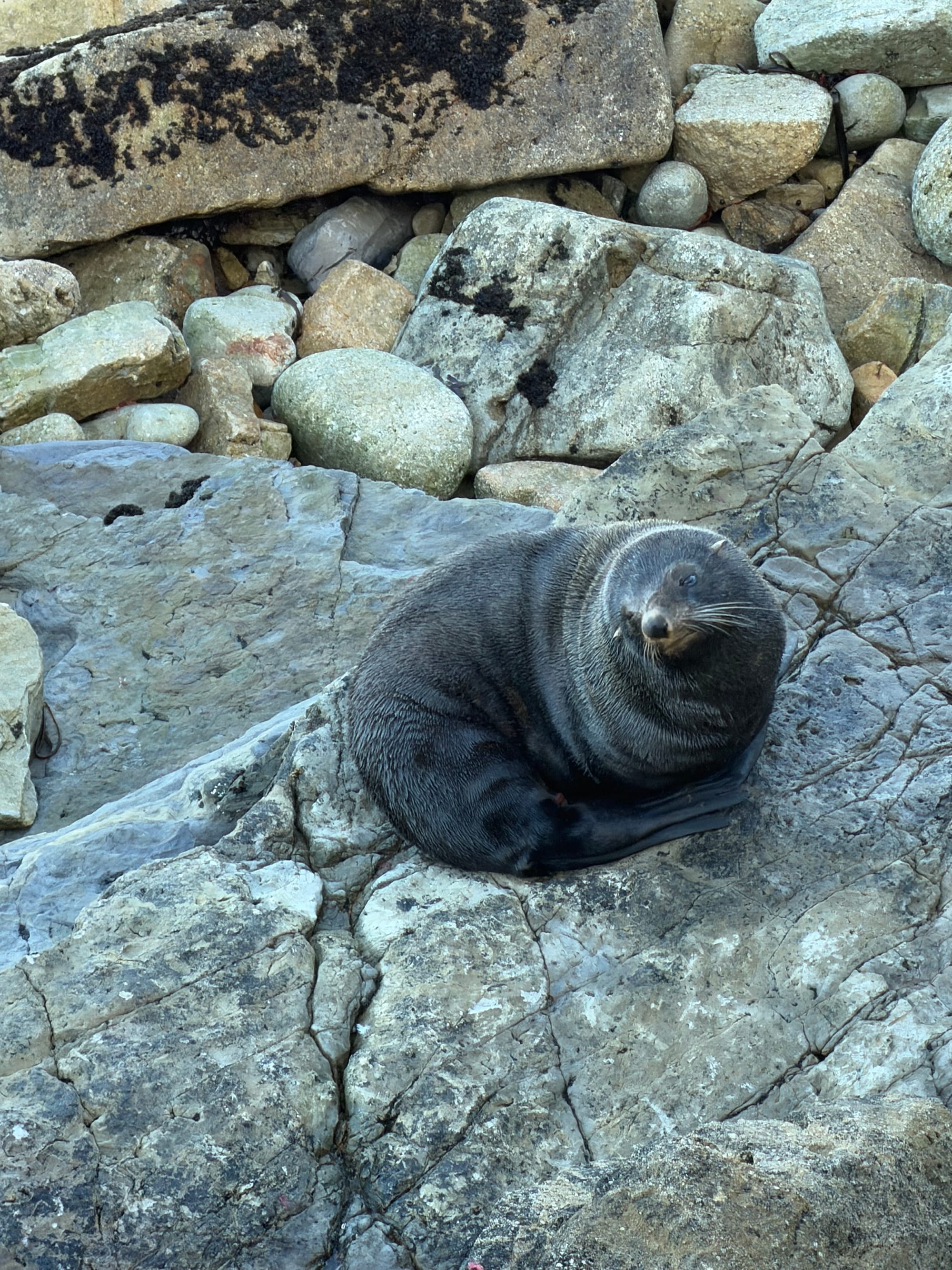 Last stop on the way north was Kaikoura for lunch. We haven’t been there since 1999, and there was a major earthquake in 2016 that isolated the town for about 3 weeks from all land access. The seafloor along the coast raised up quite a few meters and blocked about 100 km stretch of highway both north and south of the town. The town has grown significantly, but if you drive out to Fyffe Point, it still has the same flavour. Rugged, rocky coastline, crashing surf, and stunning views.