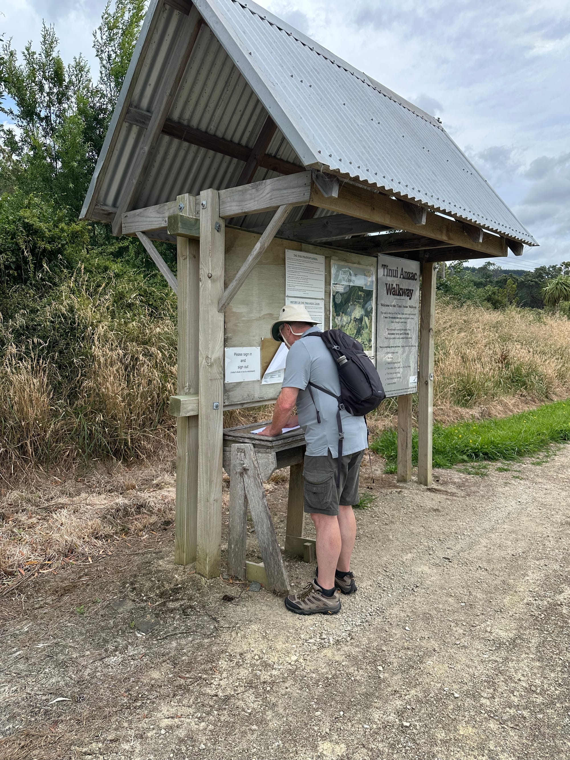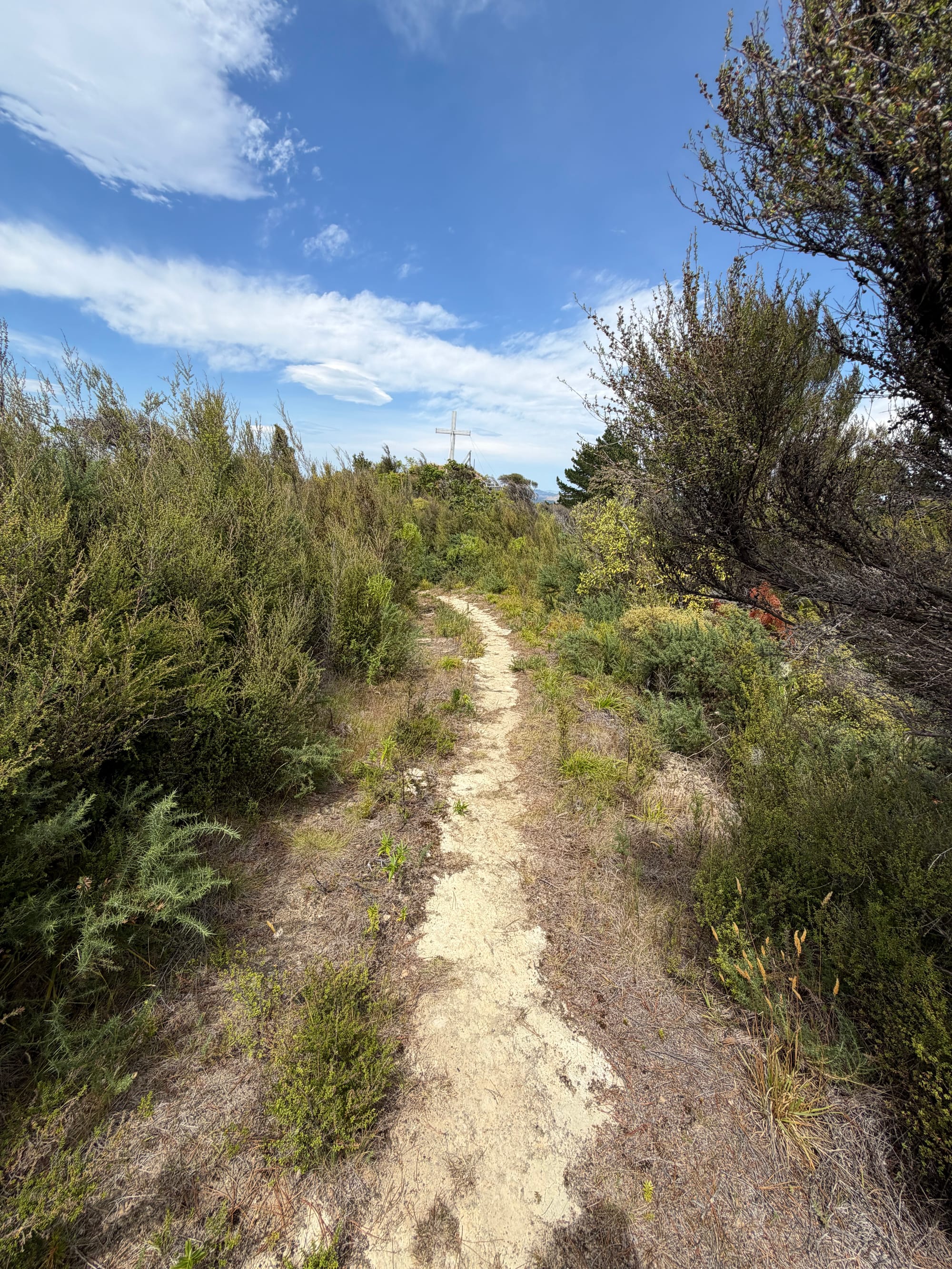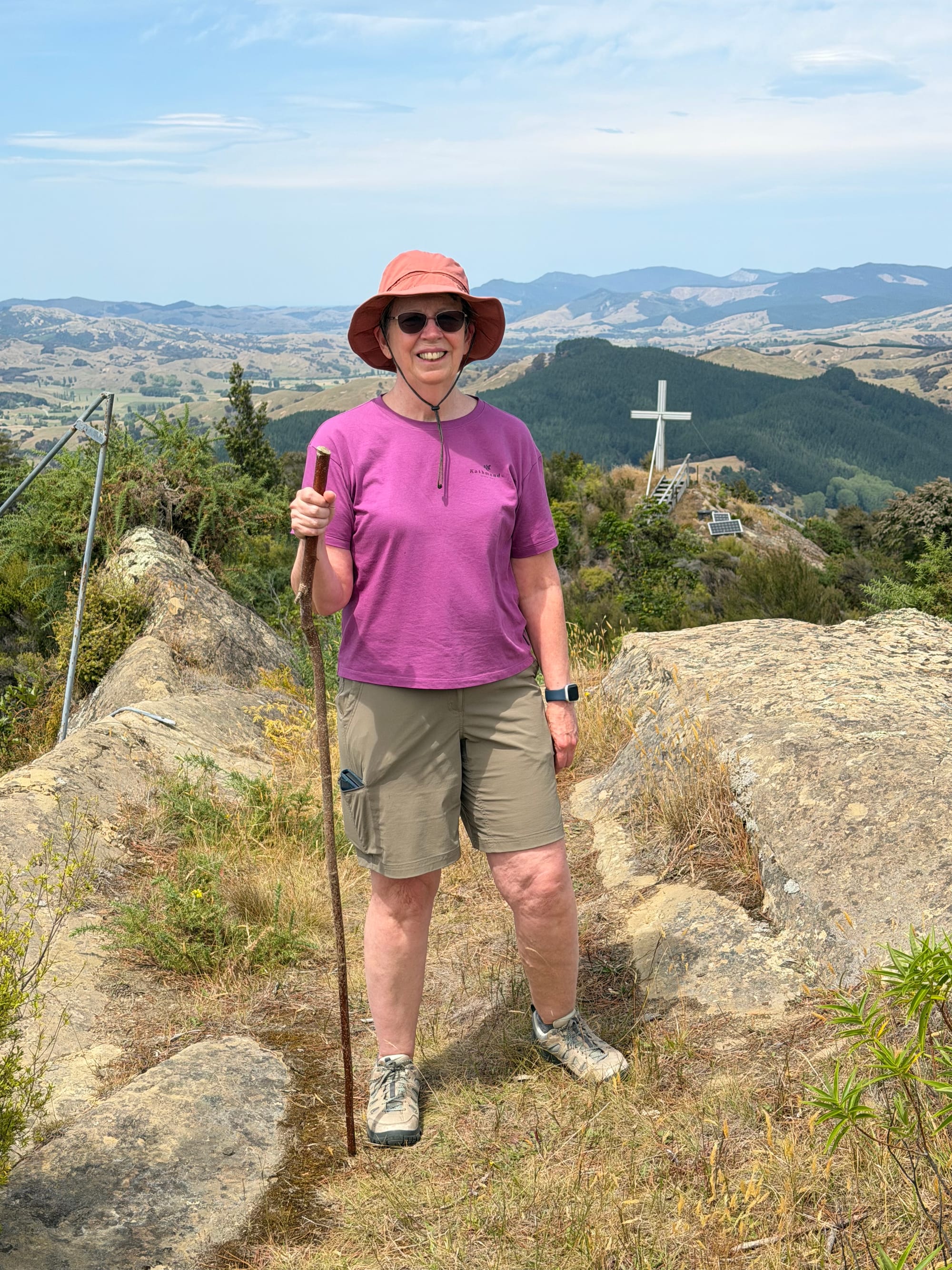 We’ve been to Masterton 3 times since we arrived. Once to stock up on food once we found out how well equipped the AirBnB was (quite well actually). The second time was for laundry on Friday, again the closest place, and then again yesterday to get petrol because I forgot to fill up on Friday……. The road is up and down, twists and turns, and I think I am actually getting used to it. The reason for the trip to get petrol Saturday was because we decided we wanted to go and see the Tinui ANZAC Memorial Cross, not too far from here. When we went up the first hill, the car started screaming at us that we were low on fuel and only had a 60km range. I thought that if we were going to get stranded by running out of fuel before we got to Masterton, I’d rather is was Saturday than Monday when we have to get to Wellington the catch the ferry to the South Island. Before we headed to Masterton, we did stop and do the hike up to the ANZAC Memorial. ANZAC stands for the Australia New Zealand Army Corp and was formed at the beginning of WW1. They were a major part of the campaign in Gallipoli where 140,000 allied soldiers died along with 87,000 Turkish soldiers. The ANZAC forces suffered over 26,000 casualties and between 8,000-10,000 dead. It was a disastrous campaign that was abandoned and should never have happened. The ANZAC Memorial in Tinui was the first ANZAC Memorial built in New Zealand. 2000 men volunteered to join the war effort from Tinui and most did not return. On April 25, 2016, a local vicar, B.D. Ashcroft who headed the effort to create a memorial, along with 10 men, 7 woman and 24 children made the trek to the top of the Taipos, assembled and erected a cross as a memorial to ANZAC forces who died in WW1. There is an ANZAC service at the top every year. It’s a good hike, and there’s a sign at the start of the trail that clearly states this is not an easy stroll. The 3.1 km trail winds up through fields and forest and 350 meters of elevation to get to the top.